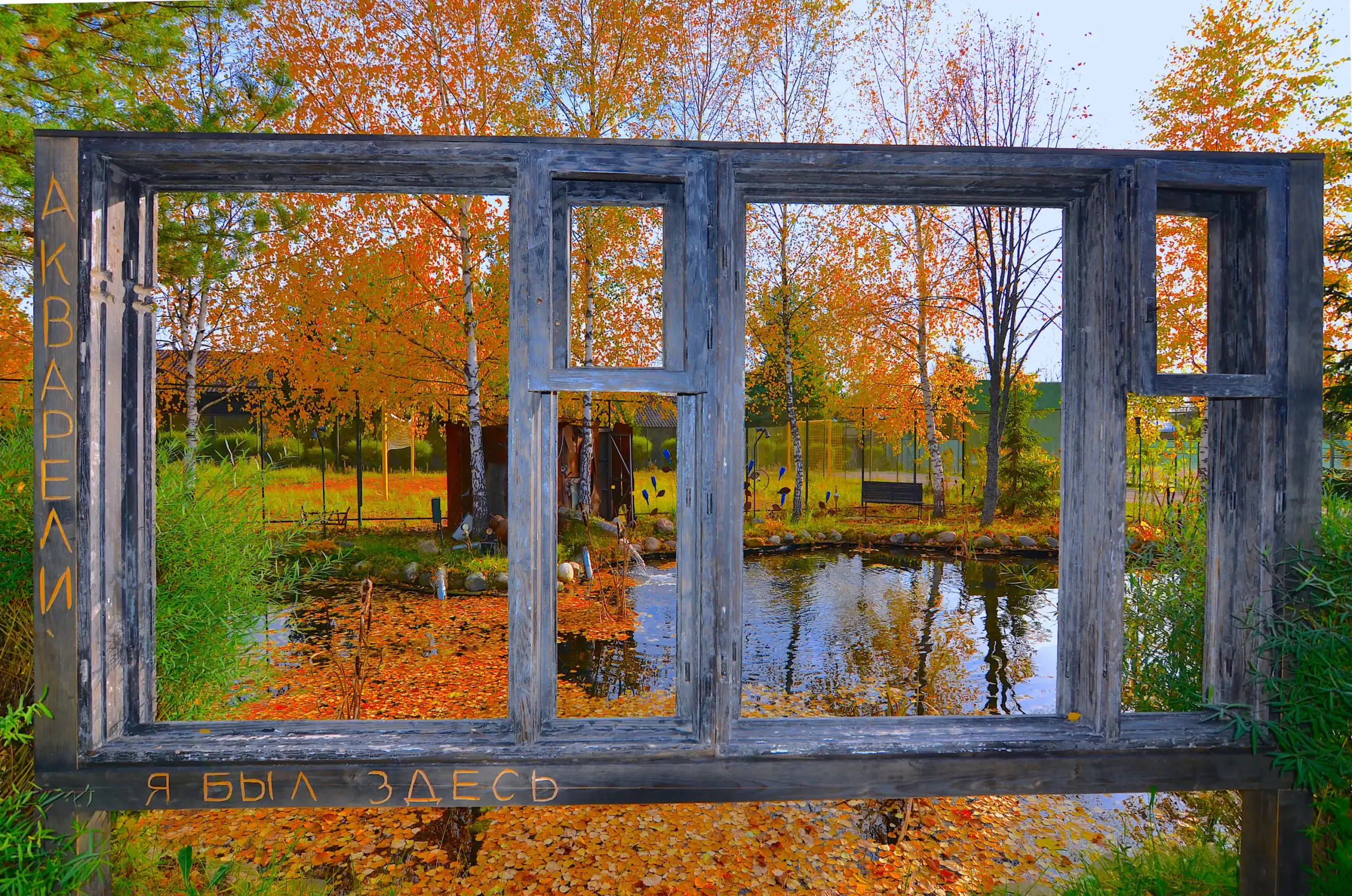 Акварели Осень деньПрудик окно_5