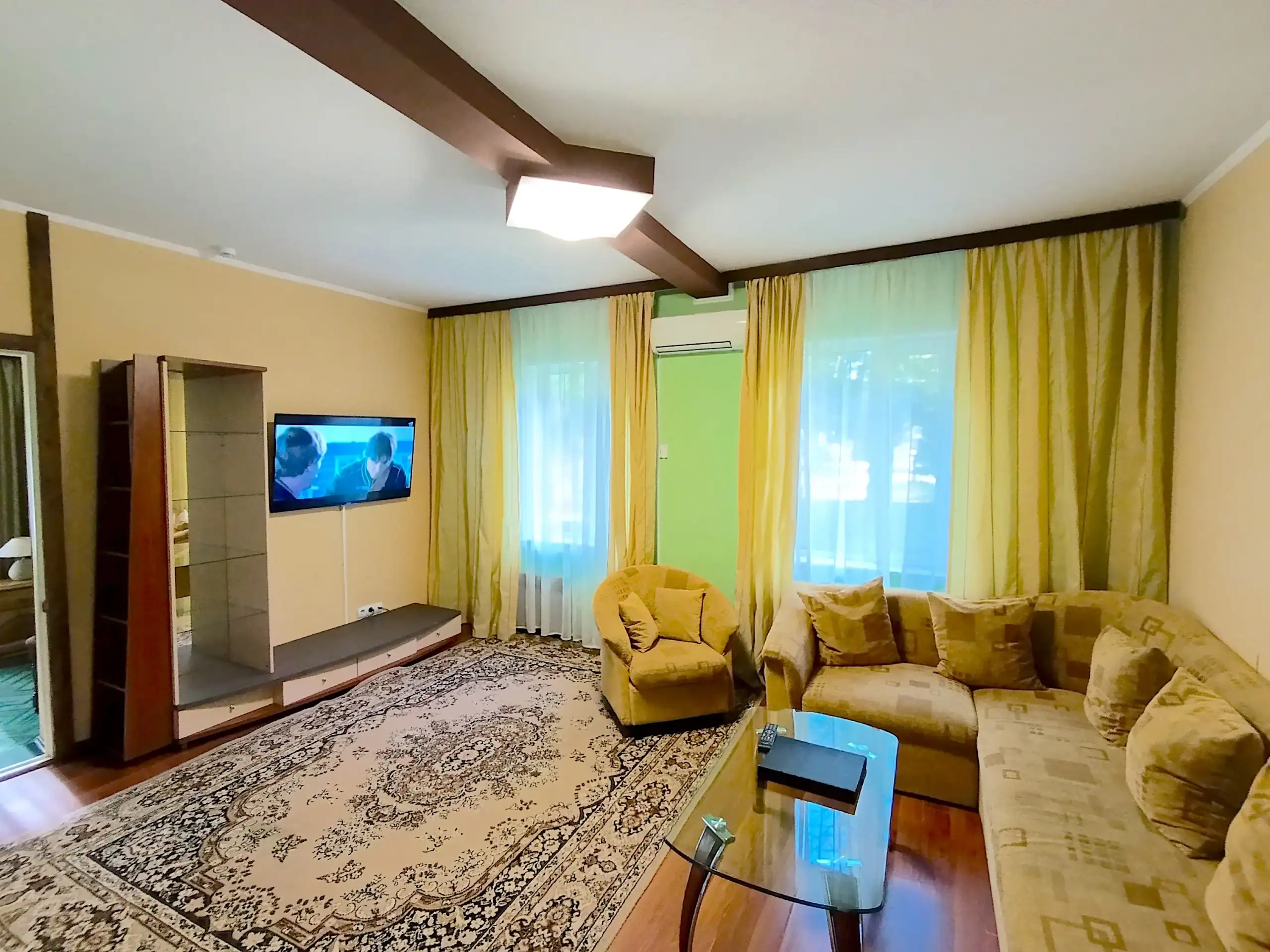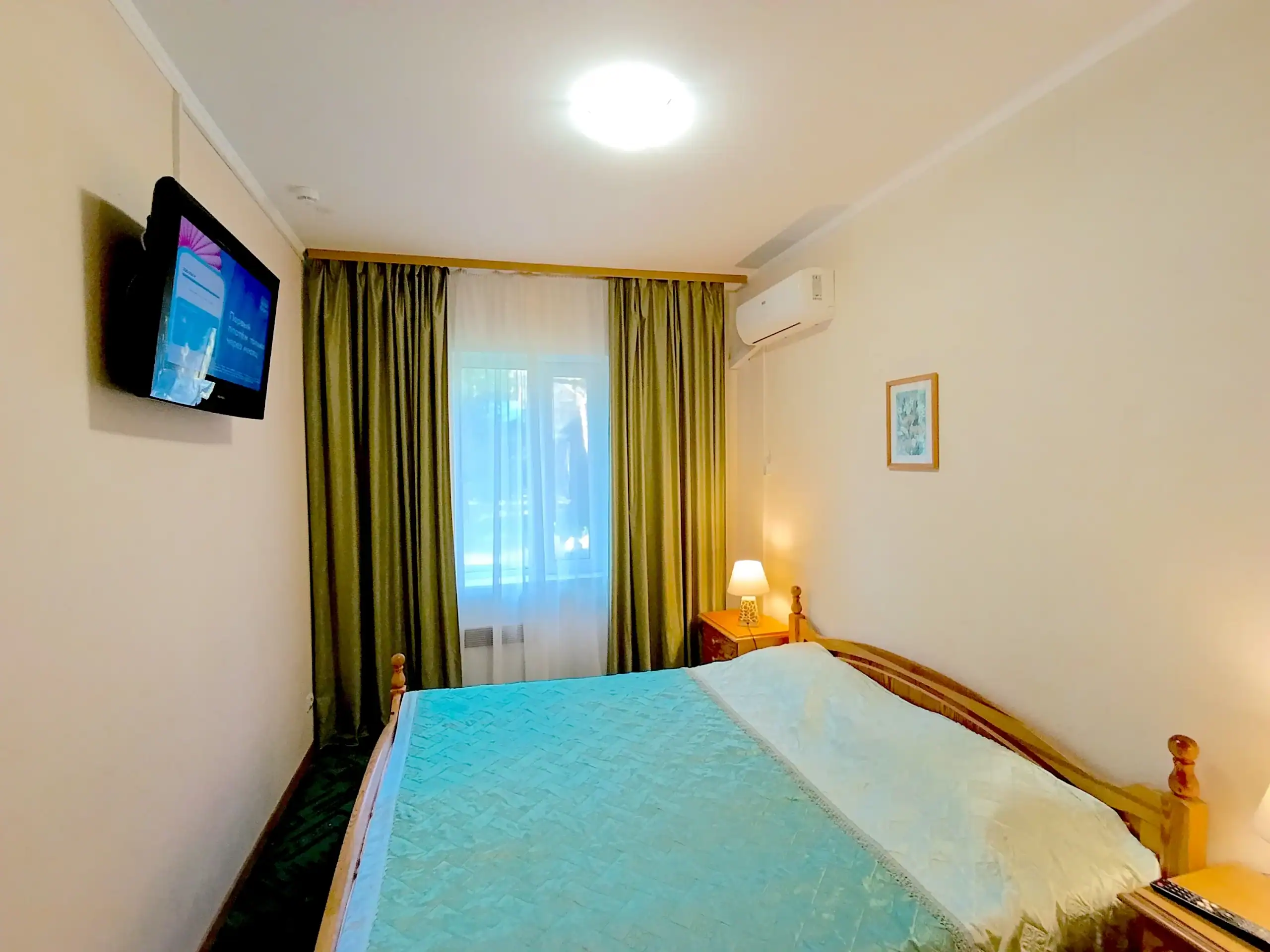 4-хкомнатный отдельно стоящий коттедж площадью 80 кв.м с кухней. Гостиная и 3 спальни. Интерьер выполнен в «городском» стиле. В спальнях по две односпальных кровати. Некоторые под общим наматрасником. Отдельный вход с улицы. Имеет крытое патио со своим мангалом.