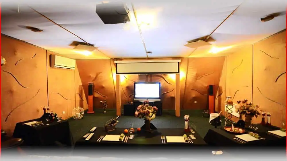 Современная конференц-зала с уютным дизайном, проектором и декором цветов, идеально подходит для корпоративных и частных мероприятий в VE Art Resort в Подмосковье.