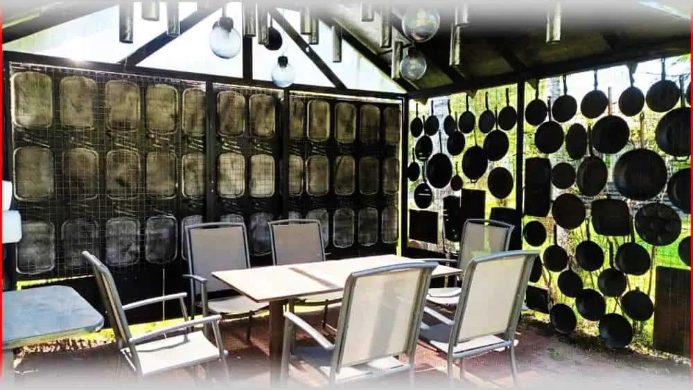 На фото изображена ухоженная зона отдых в арт-отеле ВЕ Art Resort, оформленная современными элементами и декоративными круглыми панелями, создающими уютную атмосферу для отдыха и встреч в Подмосковье.