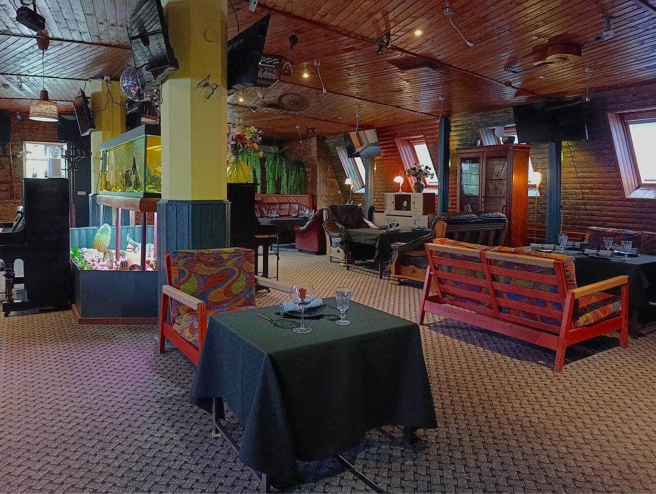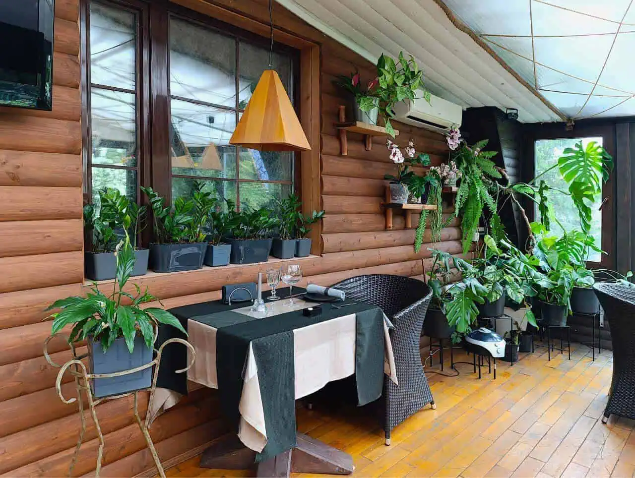 отличный ресторан с 9 залами самого различного интерьера и размера. От зимнего сада, лаундж кафе до площадок в ветвях деревьев и крытых веранд. Всегда можно уединиться и не опасаться появления неожиданного и, что еще хуже, общительного гостя