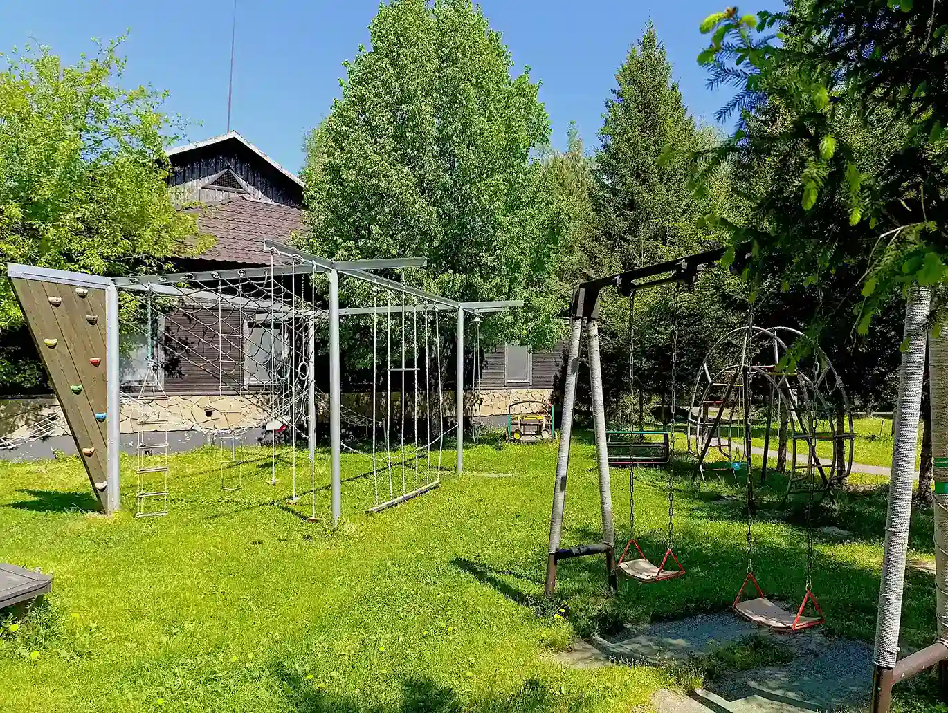 Наличие большой оборудованной игровой и тренировочной площадки для аджилити, чего нет в других отелях и домах отдыха в Подмосковье.