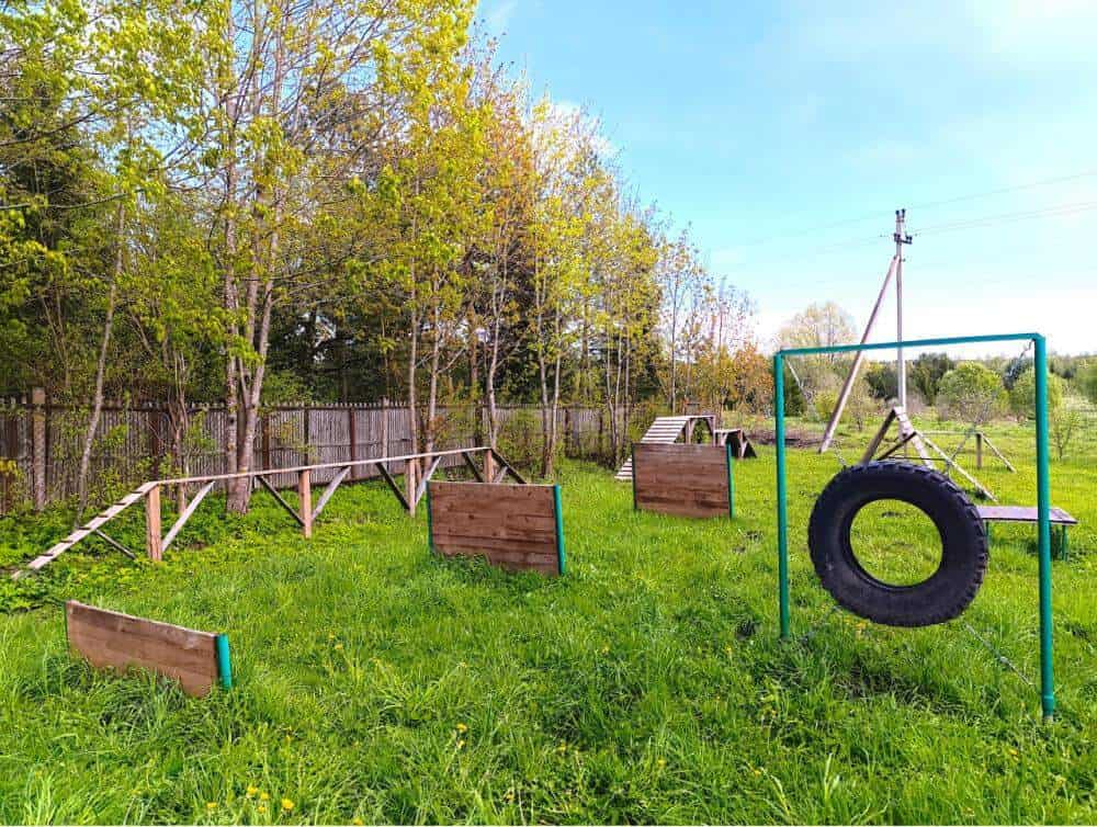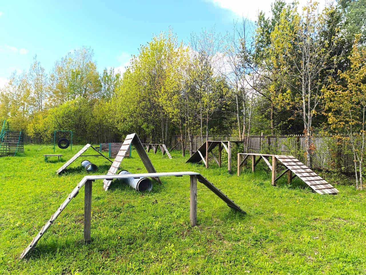 Наличие большой оборудованной игровой и тренировочной площадки для аджилити, чего нет в других отелях и домах отдыха в Подмосковье.
