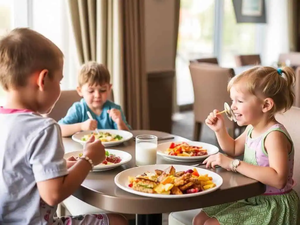 Питание в парк отеле должно быть гибким. Во-первых, узнайте о детском меню. Во-вторых, спросите о возможности раннего завтрака или детских порций.