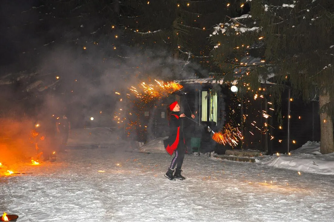 В зимнее время: коньки, лыжи, снегоходы, снегокаты, большие ледяные горки (более 50м), огромный каток (более 700 кв. м.) с искусственным освещением