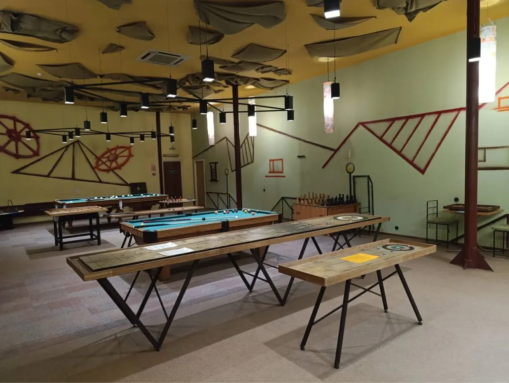 Помимо двух дорожек боулинга «AMF» со светящимся в ультрафиолете оборудованием здесь гостя подкарауливают: