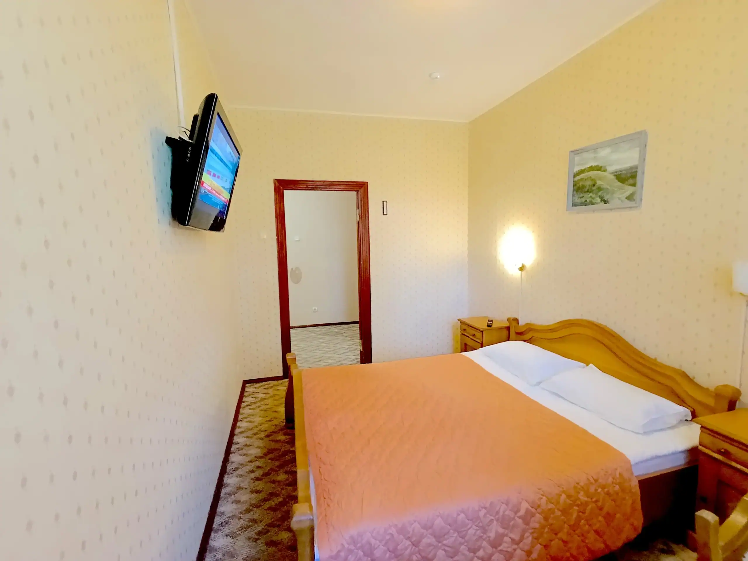 3-х комнатный номер, оформленный в «городском» стиле площадью 65 кв.м. Гостиная и две раздельные спальни. В спальнях по две односпальные кровати. Могут быть объединены общим наматрасником.
